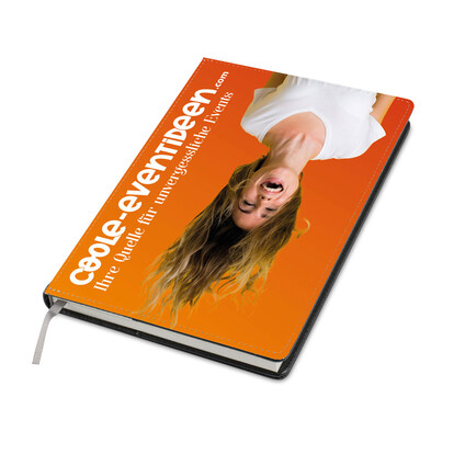 Die Vorderseite kann mit einem individuellen Foto oder einer Grafik bedruckt werden. Ein interessantes Produkt beispielsweise für Journalisten. Die große, bedruckbare Fläche auf der Vorderseite eignet sich hervorragend als Werbeträger.