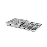 - Mitte: herausnehmbarer Einlegeboden aus gebürstetem Edelstahl. Dieser verwandelt die FIRE KITCHEN in eine Theke, wenn dieser auf der obersten Eben anstatt der BOWL 70aufgelegt wird.