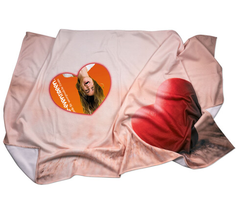 Diese partiell vorbedruckte Mikrofaser Fleece-Decke ist mit Liebesmotiven vorbedruckt und ermöglicht es Dir somit, individuelle kuschelige Geschenke ohne großen Aufwand anzubieten. Mit Liebesbotschaften oder mit Namen der Liebsten bedruckt, wärmen diese Decken Herz und Leib. Ideales Geschenk, um „ich liebe dich“ zu sagen: illustrativ oder mit Worten in unterschiedlichen Sprachen der Welt. Für romantische Abende, für das Picknick oder einfach zum Kuscheln: diese Decke macht gemütlich.