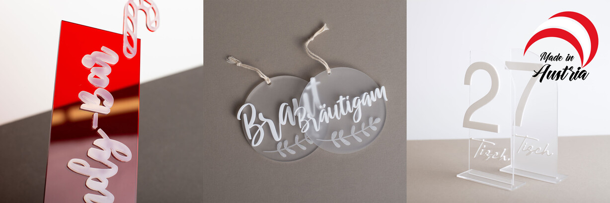 Hier finden Sie einige fertige Vorlagen zur Ansicht. Wir können jede Form und jede Gestaltung auf die verschiedensten Materialien erzeugen. Fragen Sie uns gerne an. Wir kümmern uns persönlich um Ihr Anliegen. Tel. +43 664/7500 98 43 oder info@coole-eventideen.com.