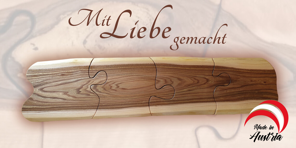 Ein Stück Natur, das zusammenführt: Handgefertigte Holzbrett-Puzzles für deine besondere Jause.