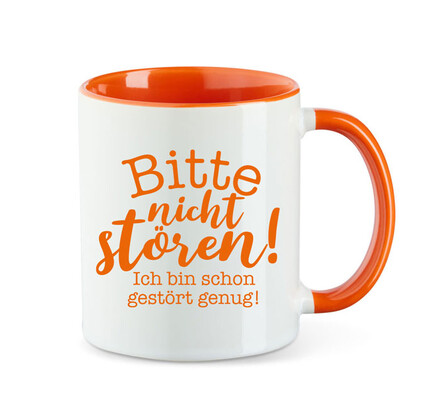 Hochweiß-glänzende Oberfläche. Innenseite und C-förmiger Henkel in 16 tollen Farben. Mit lustigen Motiven und Sprüchen