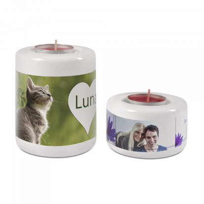 Wunderbare Wohn-Accessoires! Die bedruckbaren Keramik-Kerzenhalter haben das ganze Jahr Hochsaison. Sie passen zu jedem Ambiente, wie Geburtstag, Hochzeit, etc. und schaffen eine gemütliche und romantische Atmosphäre. Personalisiert sind sie ein ideales Mitbringsel zum Advent. Die mit Sublimation bedruckbaren Kerzenhalter sind auch in der Weihnachtszeit besonders beliebt. Der warme Schein der Kerzenflamme lässt persönliche Fotos besonders dekorativ schimmern.