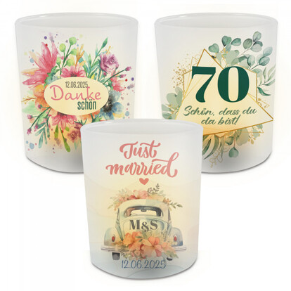 Teelichthalter aus Glas 80 mm hoch - individuell bedruckt